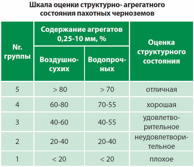 В. В. Медведев (1979) относит к показателям, которые характеризуют структурное состояние содержание структурных фракций 0,25-10 мм (агрономически ценная структура и содержание водопрочных агрегатов 0,25 мм).