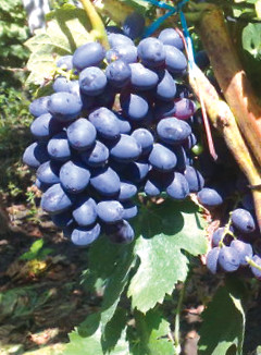 Грозди крупные, широко-конические, крылатые, нередко ветвистые, очень рыхлые и рыхлые (19 х 12 см и более). Ягоды шаровидные, слегка сплюснутые, средней величины, тёмно-синие, почти чёрные (16 х 17 мм). Мякоть сочная, тающая, вкус приятный, специфический. Сок не окрашен. Сахаристость сока – 190-240 г/дм3, кислотность — 7 г/дм3.
