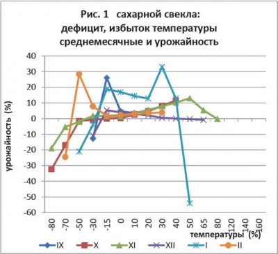 Многолетние данные (1945-2015 гг.) показали, что культура сахарной свеклы отличалась довольно разнообраз ной и разнонаправленной реакцией на колебания среднемесячных температур воздуха.