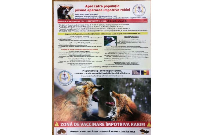 Национальное агентство по безопасности пищевых продуктов (ANSA) объявило, что кампания вакцинации против бешенства лисиц, запущенная в 2022 году, начнется 23 июня. Программа поддерживается Румынией и софинансируется Европейским Союзом.