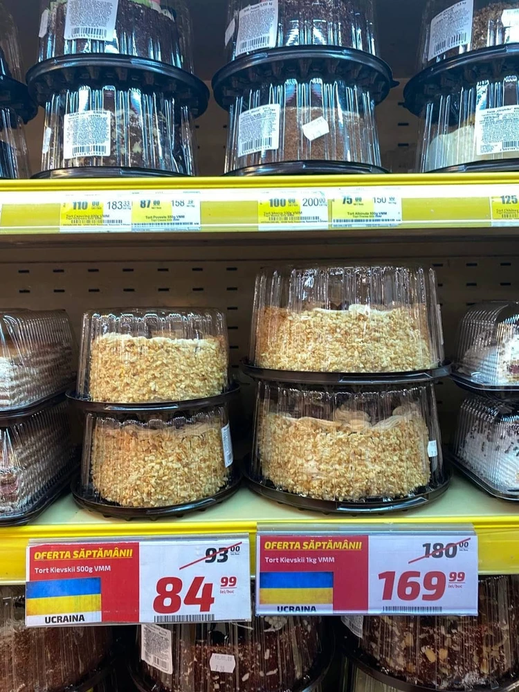 На украинскую продукцию объявили скидки в рамках акции, много чего понаписали на государственном языке, добавив, что беженцы могут побаловать себя вкусняшками с родины. Жаль, что сами беженцы не поймут всей глубины этой поддержки, потому что единственный доступный язык общения — русский.